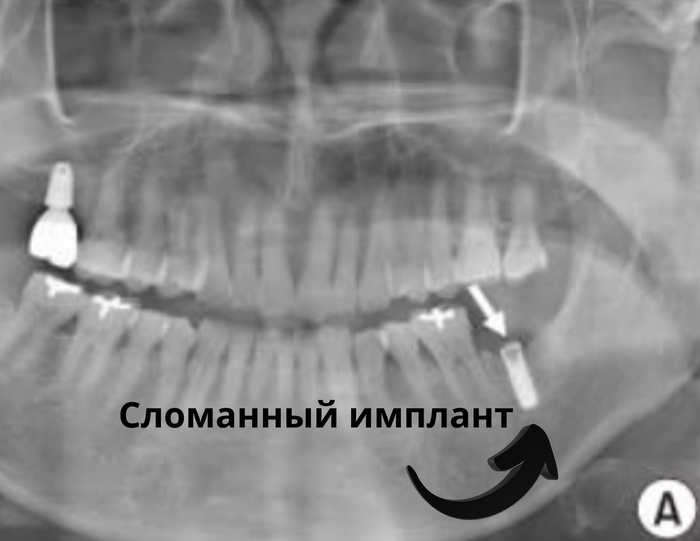 Полная потеря импланта - худший вариант, затрагивающий 12% пациентов. Организм воспринимает титан как угрозу, вокруг него развивается инфекция и кость рассасывается. В результате требуется переустановка импланта, почти так же дорога, как первоначальная операция.