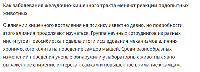 Независимые исследования уже подтвердили, что фенотипические особенности могут передаваться через кишечную микрофлору [12, 17]. Более того, оказывается, что стрессовые факторы в пре-натальном периоде и в течение первых лет жизни ребенка являются факторами риска развития психопатологии и порождают потенциально вредные изменения микрофлоры кишечника, которые могут проявляться во время критических периодов развития нервной системы и сохраняться в зрело возрасте