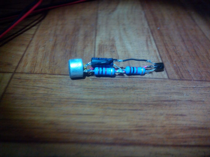 Снимать сигнал будем с электретного капсюля, типо как на картинке ниже: