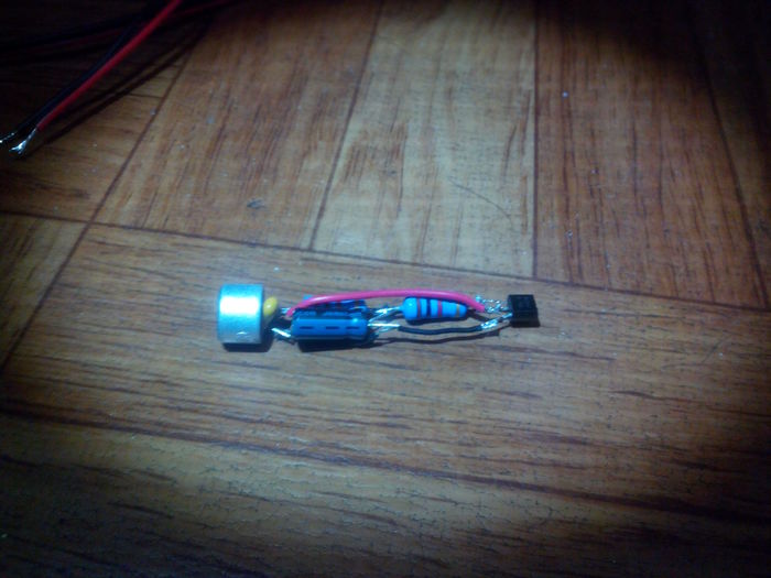 НЕ забыв продеть провод от микрофона в отверстие подставки, препаял к модулю.