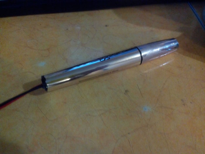 Готовим, подрезаем и рассверливаем будущий корпус. Я отобрал у девушки тубус с засохшей тушью, рассверлил и промыл.