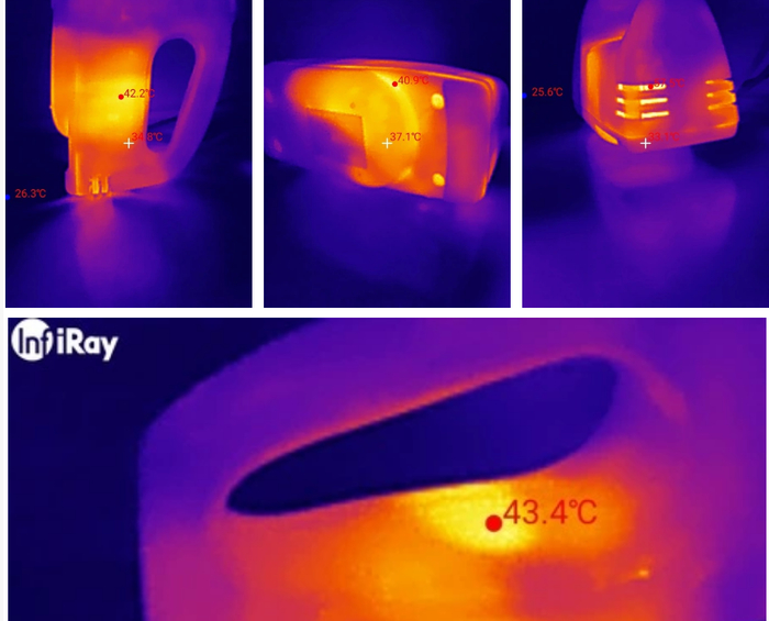 Хотелось бы поговорить о температуре. Производитель рекомендует не использовать миксер более 10 минут. После чего, требуется дать остыть устройство в течение 10 минут и можно дальше использовать. Нагрев устройства проверял после замешивания теста, а это заняло у меня порядка 5-7 минут непрерывного кручения. Максимальный нагрев корпуса составил чуть более 40°, а внутри корпуса можно увидеть нагрев около 60°. Это не критично для электродвигателя, но превышать непрерывное время работы в 10 минут, я не рекомендую.