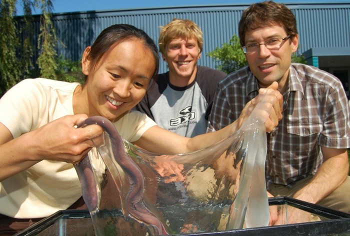 Всё благодаря второму оружию — слизи. Мерзкая, густая, удушающая слизь, что вырабатывается в железистых клетках по бокам тела. Если посмотреть под микроскопом, она будет похожа на ловчую сеть из тончайших белковых нитей длиной до 15 сантиметров. Они разбухают в воде, цепляются за всё вокруг и запутываются намертво. Нити хоть и тонкие, но очень прочные: на их основе учёные разрабатывают современнейшие бронежилеты.