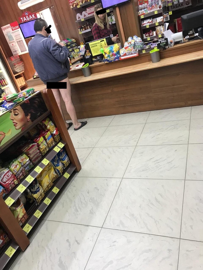 Вечером вторника покупатели одного из магазинов сети Красное&Белое в Кирове, стали очевидцами неординарного события: в торговый зал зашел покупатель без трусов, но в куртке и домашних шлепанцах на босу ногу.