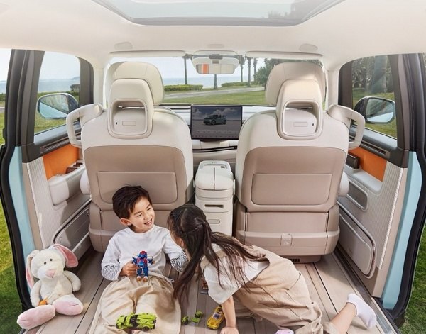 CX1E имеет передние фары с семейными характеристиками, черную накладку до двери, вентиляционную конструкцию и лидар на крыше. Он имеет скрытую двойную центральную стойку и уникальную двухсекционную дверь с электроприводом. Габариты кузова: 4688 х 1995 х 1755 мм, колесная база – 3008 мм.