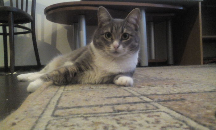 Вот такая красота живёт со мной. Постоянно шпионит , а когда я в туалете , засовывает лапу под дверь в шель и щупает, в надежде поймать та пок или ещё чего.