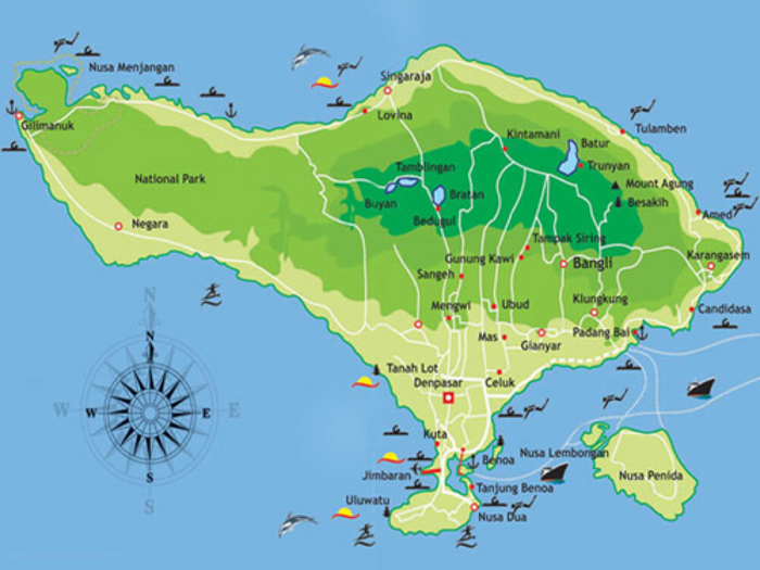 Про рынок . Вообще стоит тут добавить наверно карту , тут можно сказать сразу и про мусор и что то общее . Карта будет ниже .Что бы было понятно вы всегда прилетаете в низ острова в Ngurah Rai International Airport а самом низу только общие названия возьмём -Джимбаран ,Улувату ,и Нуса -Дуа справа восточная нижняя часть .