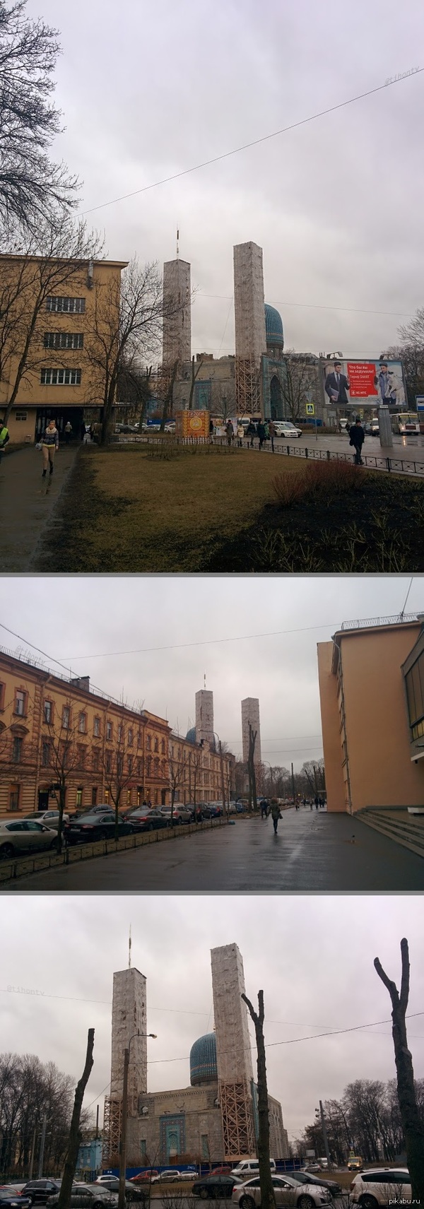 СПб, минареты в лесах. Антенну добавил в фотошопе