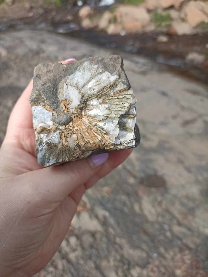 В СПбГУ - находку определили как минеральный агрегат, но мое пытливое сердце не хочет смириться с таким скромным заключением, и конечно же я вижу в этом образце след какого-то древнего растения.. А что скажут специалисты?