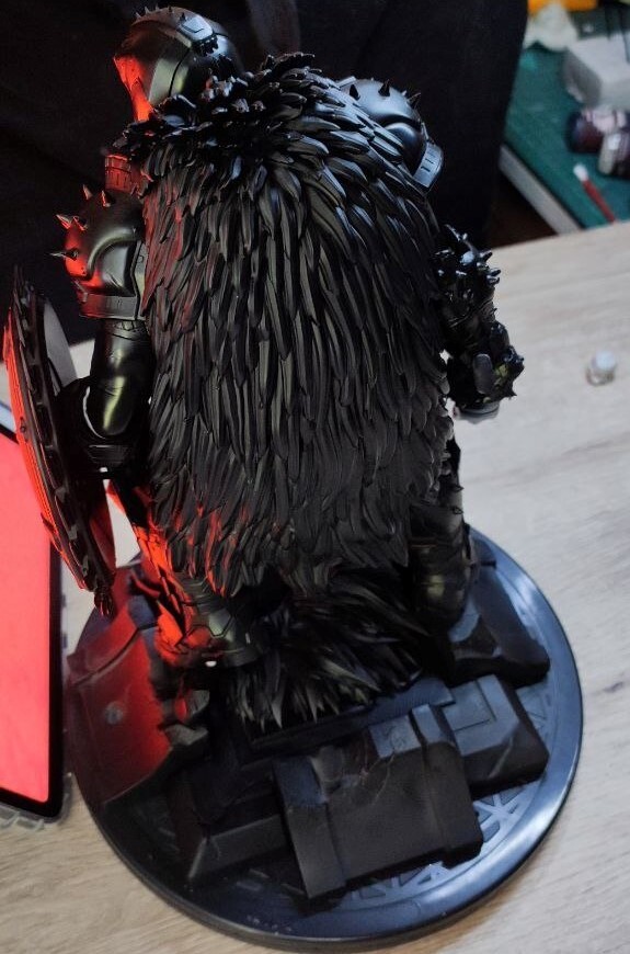 Коротко о самой фигурке - 26 сантиметровая дура из фотополимерной смолы. Неплохо напечатано, однако на некоторых весьма нежных и тонких местах заметны ступеньки от принтера. Учитывая, что я нищеброд, и беру самое распродажное и дешёвое себе на опыты - у нормальных миниатюрщиков этой проблемы почти нет, и ступеньки на порядок меньше. Штош, наждачка в руки, Климсаныч с Димюрьичем в наушники и погнали шлифовать.