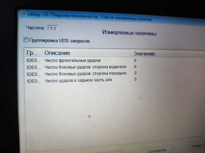 Присутствует ошибка по подушкам безопасности, хотя по счетчику подушки не срабатывали: