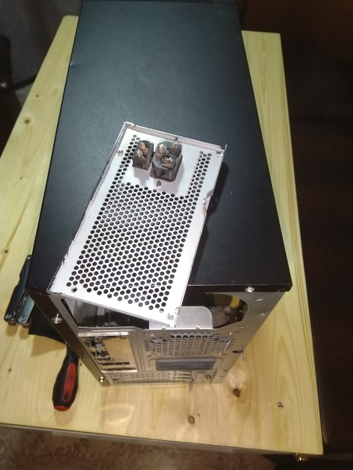 так же поступил с корпусом блока питания, внутренности оставил на запчасти.