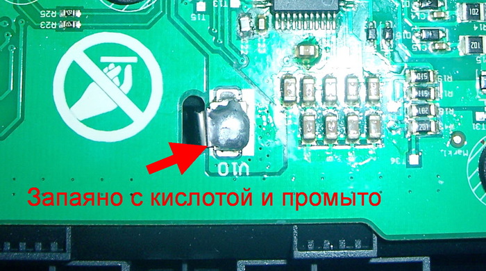 Облом ленты вывода одного аккумулятора. При его прижиме начинает заряжаться. Как такое могло произойти догадок нет. Берем кислоту, зачищаем надфилем площадку (ВСЕ ПРОИСХОДИТ ПОД НАПРЯЖЕНИЕМ т.к. отключить аккумуляторы не получится просто) поэтому стараемся ничего не коротнуть, как это сделал я. Запаиваем и тщательно промываем ватой с изопропиловым спиртом.