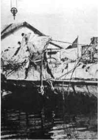 Разбуженный взрывом младший инженер-механик, не одеваясь, выскочил из каюты, чтобы бежать в машину. Однако, сообразив, что проникновение в машину бесцельно, так как она не прогрета и хода дать не может, он решил спуститься в кочегарку, чтобы развести пары. Спустившись в темноте в кочегарное отделение, он почувствовал под ногами воду. Оказалось, что шахту уже залило водой. Спустившись затем в другую кочегарку, он обнаружил и в ней воду. Люди, находившиеся там, были частью ранены, остальные, охваченные паникой, бесцельно бегали, не предпринимая каких-либо мер борьбы за живучесть корабля и собственного спасения.