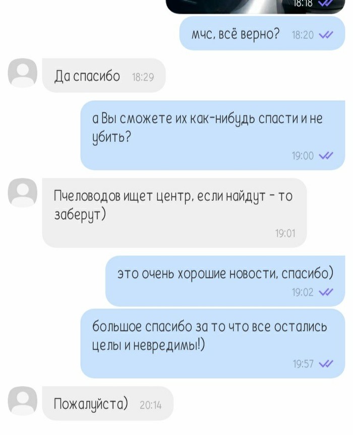 Наконец, пчёлы были собраны в ящик (я не удивлюсь, если все до одной), и каждый пошел своей дорогой: дядечка-пасечник с пчёлами в одну сторону, добры молодцы в форме в другую, а зрители во все сразу, потому что им домой хотелось. А я пошла писать слова благодарности за хэппиэнд одному совершенно мне незнакомому, но очень хорошему человеку (по крайней мере, по отношению к пчёлам).