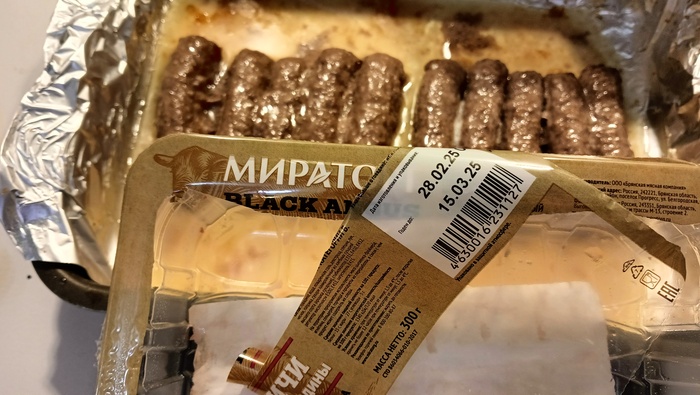 Купил вечером себе колбасок чевапчичи на ужин. Покупал их довольно часто и всегда было все нормально. А сегодня мрак какой то. Как обычно, выложил в противень, сунул в духовку с конвекцией на 15 минут и получил это: