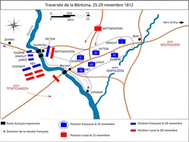 27-ого около двух по полудни Наполеон со старой гвардией пересек реку. А Витгенштейн только добрался до Березины и вступил в бой с 12 французской дивизией, всё ещё застрявшей на берегу реки.