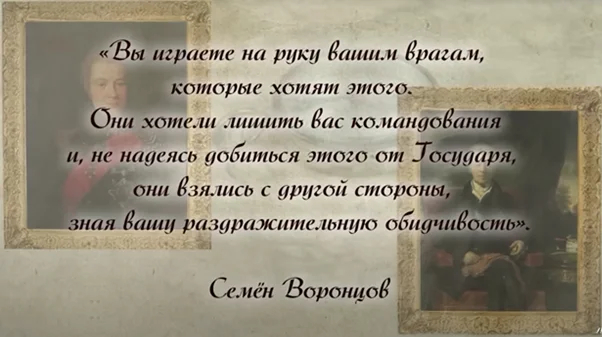 А во-вторых, Кутузов был мастером подковерной игры и работы на публику. Он мастерски создавал себе образ крутого генерала, например, мог выпустить специально обученного кибер-орла, когда въезжает в расположение гвардоты...
