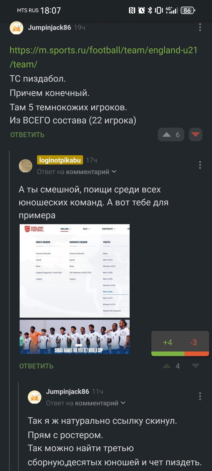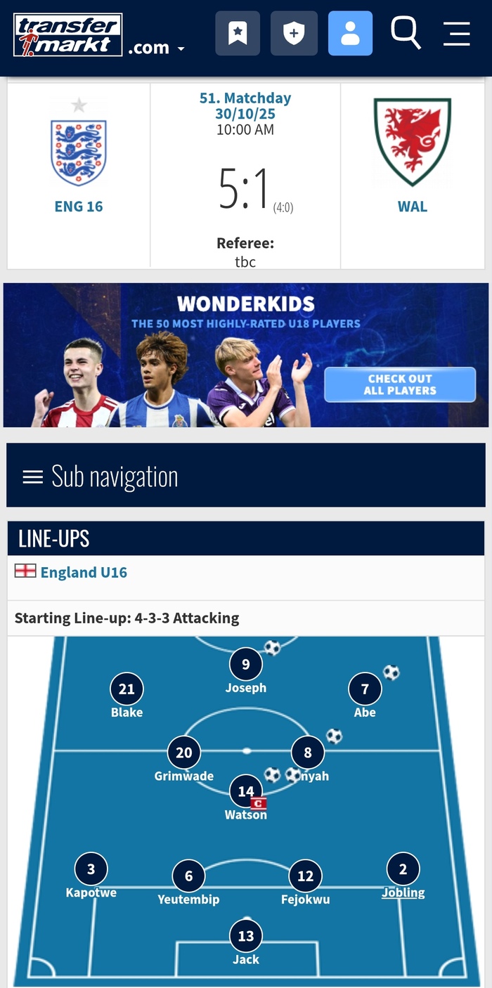 Нашёл я эту команду, и эту игру, в частности. Это действительно сборная Англии U16. Игра с Уэльсом 30.10.25 закончилась со счетом 5:1 в пользу Англии. Зачем я это пишу? Затем, что есть целый пласт комментаторов, которые в агрессивной форме хуесосят анонима за вброс. Аноним хуже пидораса, это давно известно, но в данном конкретном случае, некоторые комментаторы оказываются хуже анонима, что удивительно.