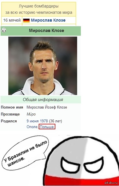 Сегодня, 9 июня, немецкому футболисту польского происхождения Мирославу Клозе исполнилось 35 лет.
