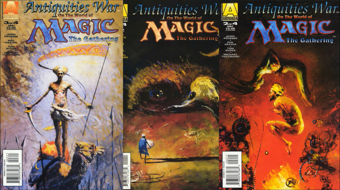 Однако до новеллы существовали комиксы посвященных миру МТГ, которые выпускала компания Armada. Но комиксы не являются каноном, так как имеют сюжетные расхождения с новеллой «Война Братьев».