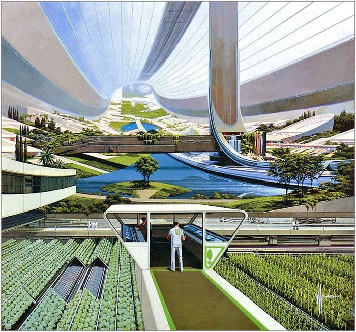 Как кто-то спрашивал в комментах, а что там с горизонтом? А ничего. Его там нет. Вы смотрите вдаль, и куда бы Вы не смотрели, по вращению кольца, против вращения, вбок, кривизной кольца всегда можно будет пренебречь. Все что Вы увидите это бесконечная даль которая тонет в дымке. На Земле такого нет, потому что нет таких пространств. Но это отсутствие горизонта оказывает гипнотический эффект на слабых духом некоторых людей.