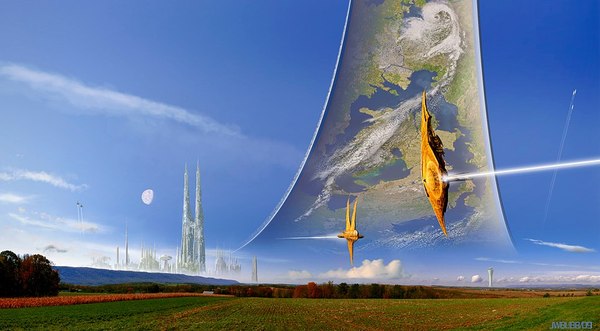 Однако основная проблема с иллюстрациями Кольца - это что оно слишком огромно, и все эти размеры выглядят не очень естественно. Скутеры с картинки выше при таком виде буду находиться на высоте нескольких тысяч километров, то есть за атмосферой.