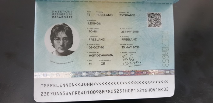 Паспорта Фриленда идентифицируют своих владельцев, живущих в материальном мире, за исключением паспорта Джона Леннона, оформленного исключительно в демонстрационных целях. Паспорт предназначен именно для того, чтобы максимально соединить данные о владельце в информационном пространстве и в нашей повседневной жизни.