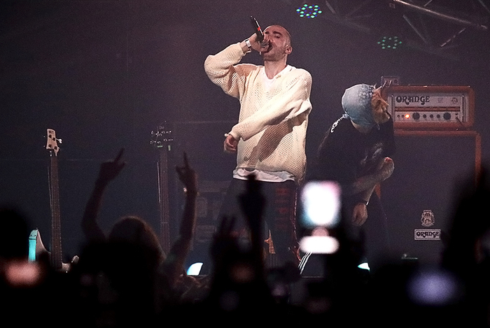 Рэпер Noize MC (Алексеев Иван) во время концерта в поддержку Хаски на концертной площадке «Главклуб» (ГлавClub)
