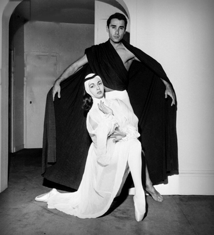 Мишель Мерсье и Пьер Лакотте на репетиции пьесы "Баллада о Ронсаре", 1957 г.