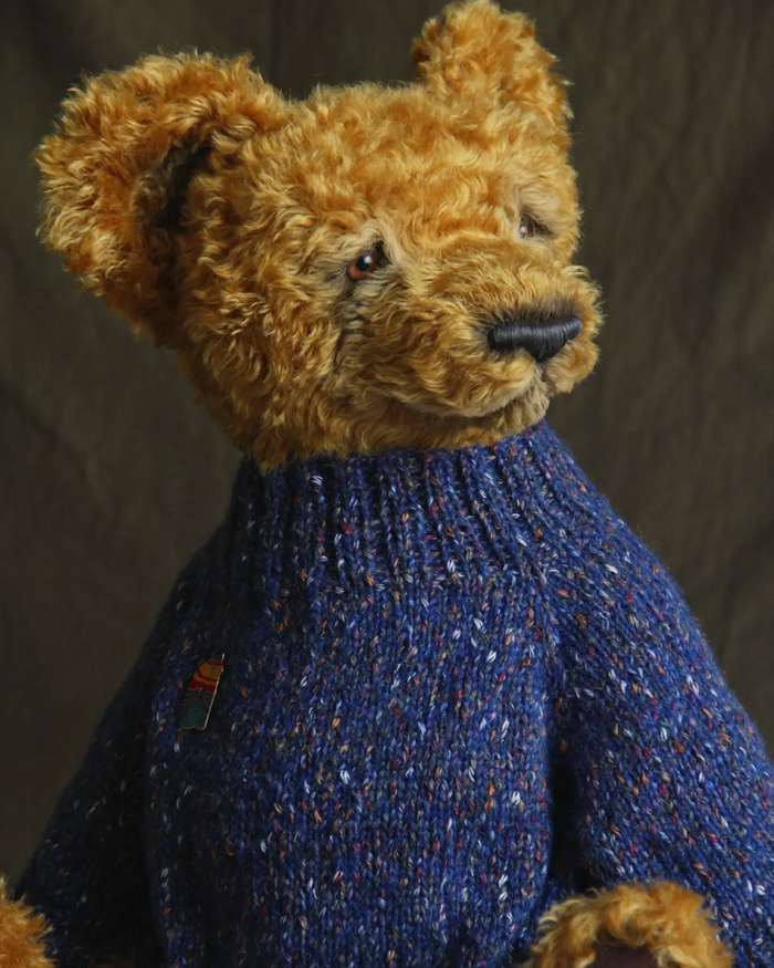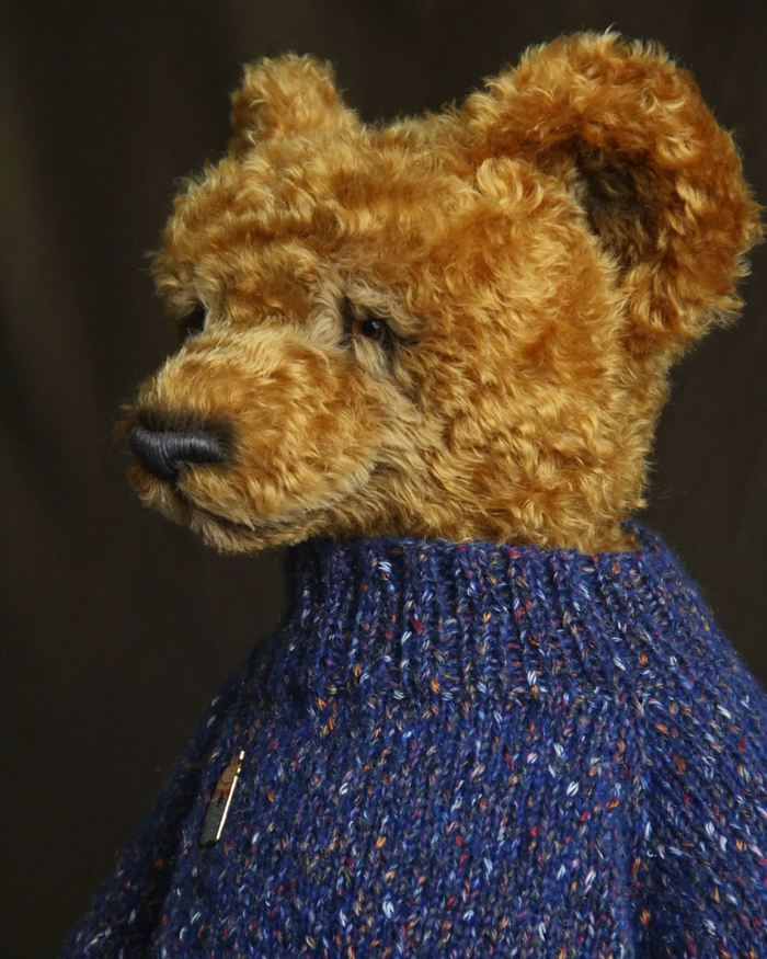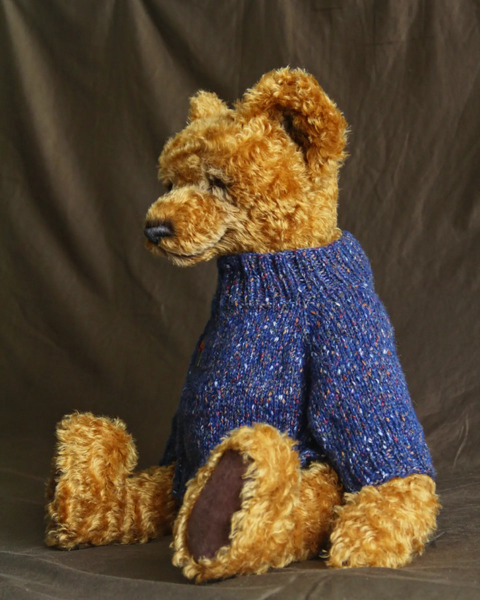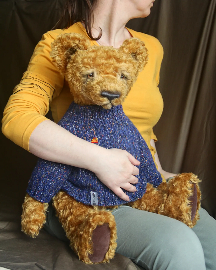 Высота: 23 см. Материалы: искусственный мех, шплинтовое соединение (5 точек), опилки, стеклянный гранулят, глаза: стекло. Съёмные аксессуары: одежда (шерсть, искусственная кожа), игрушки (фанера).