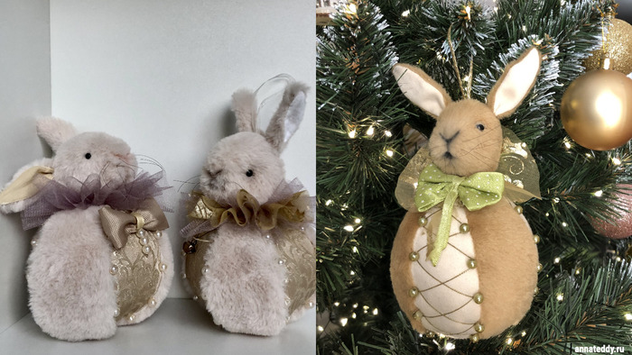 Три разных, но похожих зайки. Отшиты как подарки друзьям на наступающие праздники. Высота 17 см. Материалы: вискоза, искусственный мех, органза, парчёвая ткань, бижутерия, синтепон, опилки, глаза: стекло. Голова подвижна (шплинтовое соединение).