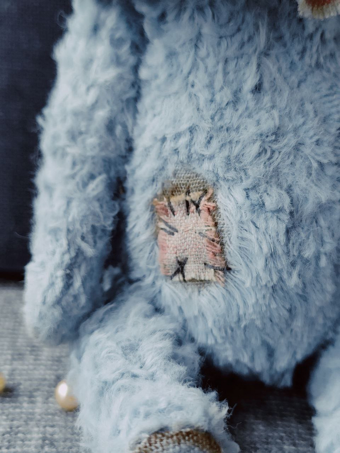 На куртке — миниатюрная пуговица в виде красного сердечка, а уши, стопы и когти мишки выполнены в коричневом цвете, которвй гармонично сочетается с его тёплым образом.