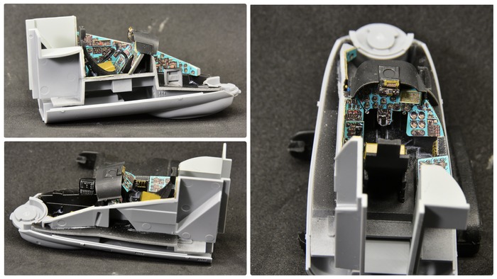 Стройка авиации, как обычно, начинается с кокпита. Пилотов в музее нет, их не делаю. Травло действительно очень тонкое и мелкое, совершенно безумные деталюшки! А клей хватает не как хочется, а как попало. Пайка, конечно, лучше, но не для всех деталей подходит. На этом я пришёл к тому, что самый удобный способ доставки суперклея - длинный носик-дозатор, в нём клей можно дозировать действительно малюсенькими капельками. Аппликаторы - фуфло.