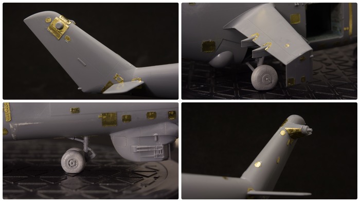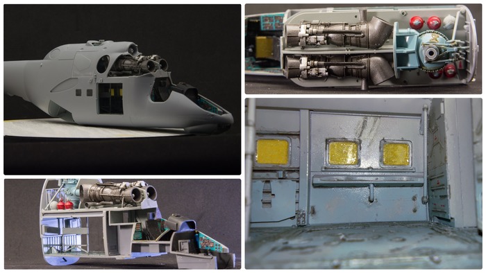Десантный отсек планируется открытым, а вот капоты двигателя - нет, поскольку их деталировка оставляет желать лучшего. Получается вот такая внутренняя капсула, которая убирается внутрь фюзеляжа. До самого последнего этапа створки будут закрыты.