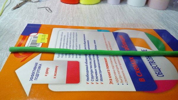 3 шаг. Из большого куска "катаем" стебель и оставляем его высыхать.