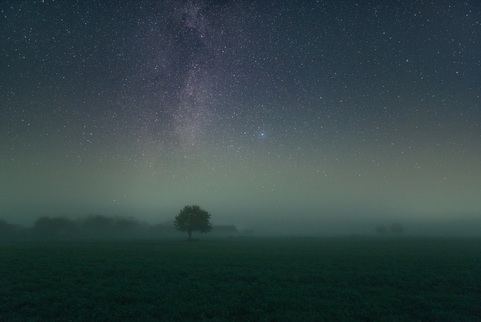 Я понимаю, что в астрофотографии нет места художественности. Поэтому я постарался передать атмосферу того самого момента, когда я пытался сделать этот кадр, настолько, насколько я способен в принципе. Было жутко, мрачно, но над головой было просто фантастическое звездное небо. Передаю свои ощущения вам.