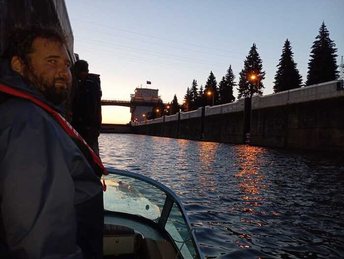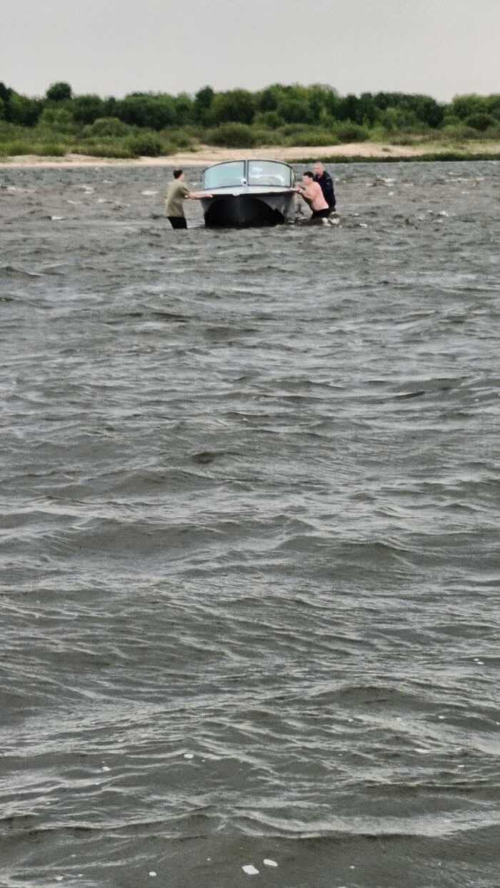 Толкали,качали,тянули...вода теплая а ветер холодный.но вытащили.потом на тиковом Акум один из двух сел,пока меняли нас унесло...с горем пополам до Городца добрались,и в ночь в горе-море вышли.а там полчаса и Чкаловск.