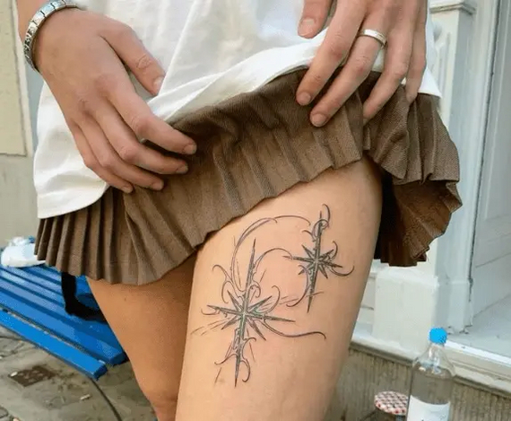 Таким образом, тату на бёдрах девушки также говорит о том, что она очень "открытая личность". Конечно же объясняют они это искусством, эстетикой или прочей шелухой. Но главная суть в том, что она не против того, чтобы мужчины к ней проявляли внимание. Как минимум глазами.