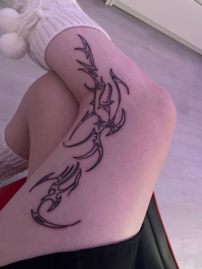 Интимной частью считается даже бедро девушки. Это не просто участок кожи, на которой изображено тату. Ноги женщин по особенному были привлекательны во все времена. Это что-то среднее. Это можно показывать, но если девушка в короткой юбке, то она может получить неодобрение от окружающих на этот счёт по понятным причинам. И дело вовсе не в том, что "люди живут в средневековье", а в том, что это продолжение ягодиц и по консистенции/упругости часто ничуть не уступает, как никакая другая часть тела. Поэтому при взгляде на бёдра может возникать похожая реакция как и при взгляд на ягодицы.