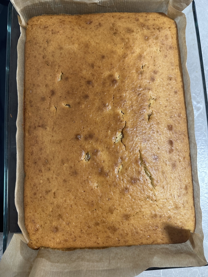 6.Переложить тесто в форму в которой будете выпекать кекс, разровнять тесто по форме(если у вас круглая форма, то чем меньше диаметром будет форма, тем выше будет кекс).