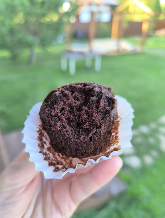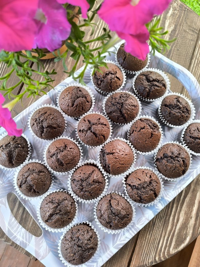 Для более насыщенного шоколадного вкуса я, конечно, рекомендую алкализованный какао-порошок. Но у меня был только обычный, и всё равно вышло очень шоколадно 👌🏻 Половину сахара заменила на коричневый, тоже просто потому что он у меня был.