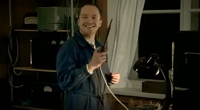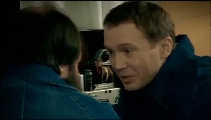 Работники шарашки, поздно вечером слушают музыку по радио и изображают бурную деятельность. Тут кроме Евгения Миронова засветился так же чему то довольный Евгений Стычкин, изображающий бурную деятельность с паяльником в руках. Стычкин не только держит паяльник в руках, но еще успевает строить глазки сидящей тут с ними в одной комнате молоденькой девушке.