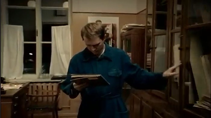 На фоне сидящего на кровати Миронова, за кадром Солженицын зачитывает текст: