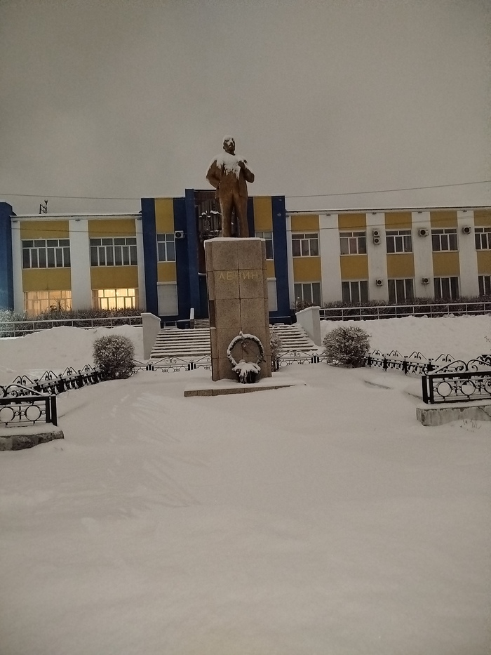 Примерно год назад. Владимир Ильич на фоне ДК Железнодорожников, Улан-Удэ. (да, горизонт слегка пьян, как и я в тот вечер)