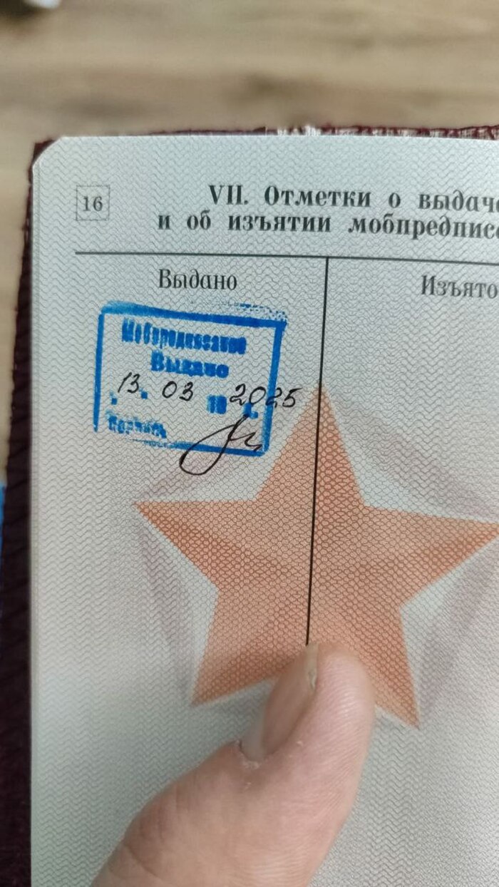 И вот вызывают Володю в военкомат для сверки документов, изменения заносят в реестр и выдают мобпредписание со словами - В штурмовых подразделениях вы участвовать не будете, поэтому будете служить в тылах и печь хлеб тем кто на передовой находится. В конце отдают военное с предписанием и говорят, что пусть ждёт повестку.