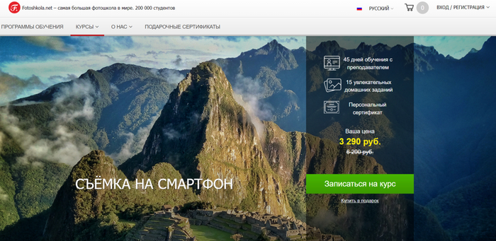 Программа этого курса не рассчитана на обучение фотографии на телефон, но она будет интересна тем. Кто хочет заниматься фотографией на профессиональном уровне. Именно поэтому мы добавили ее в рейтинг. Всего за 5 месяцев обучения вы освоите экспозицию, диафрагму, работу с оптикой, поймете, что такое баланс белого и цветовая температура, типы освещения. Сможете создавать красивые композиции и использовать полученные навыки, в том числе, для фото на камеру телефона.