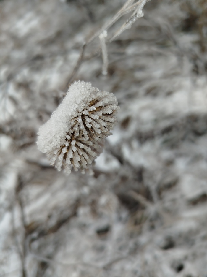 Все деревья в изморози. Красота неописуемая ❤️ Репейник вообще похож на ёлочную игрушку 😊