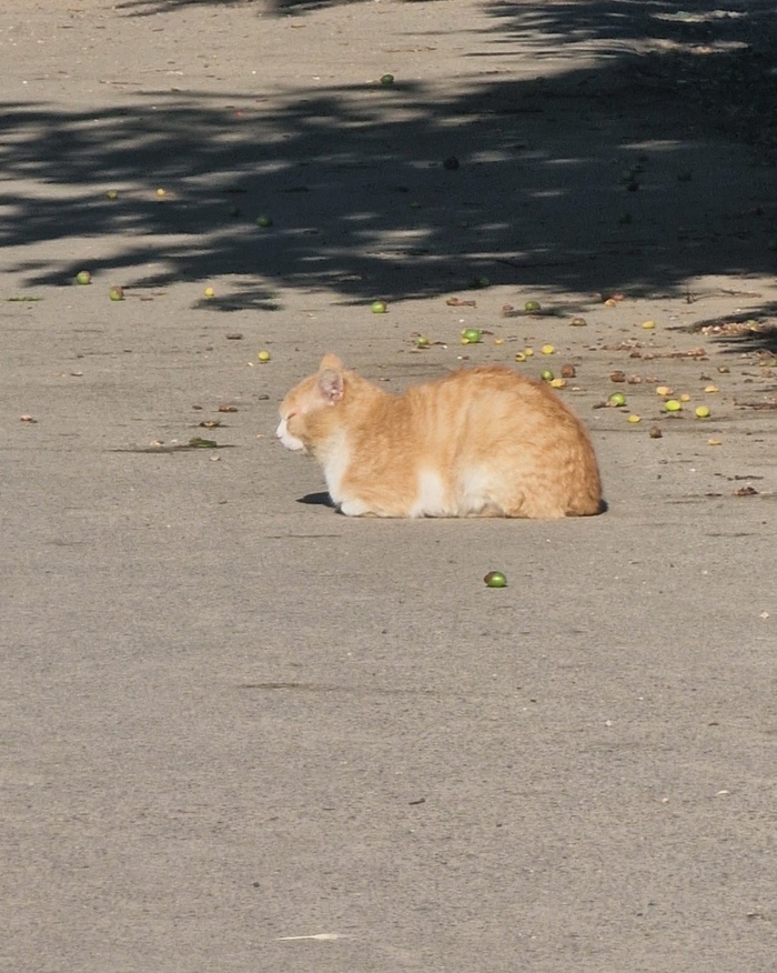 Рыженькая булочка с разорваным глазом. Живёт на улице, без хозяина. подкармливается доброй бабушкой. Не боится собак и автомобилей. Видимо всякое в жизни повидал :(