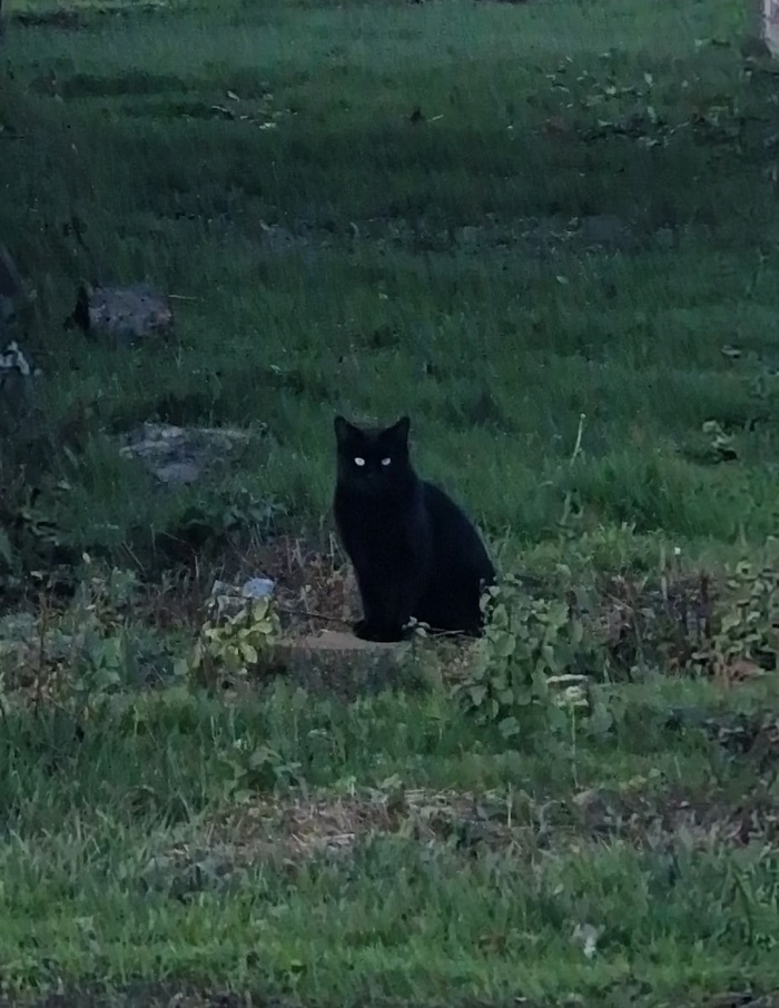 Ещё одна грязная кошечка из помойки. Следит за тобой, пока ты просто проходишь мимо. Ибо ты "двуногий", от тебя всякое можно ожидать.
